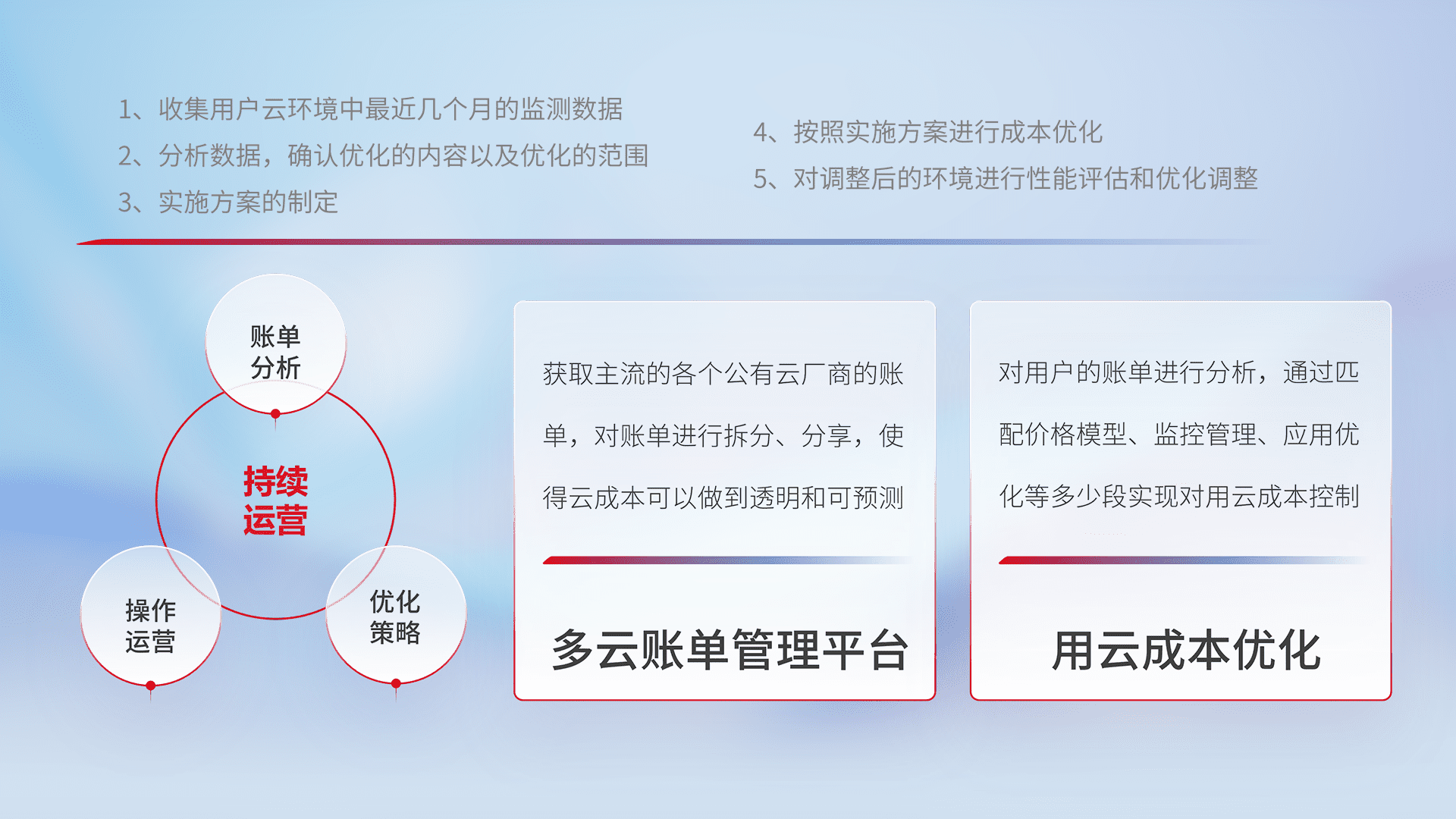 监控业务系统资源开销,,,,对资源的消耗精确计量,,,,实现费用的透明化管理,,,,不断提升资源使用率,,调整资源购买方式,,降低资源费用成本,,,用云成本可预测、、、、用云费用可优化,,,云资源配额有据可依。。
